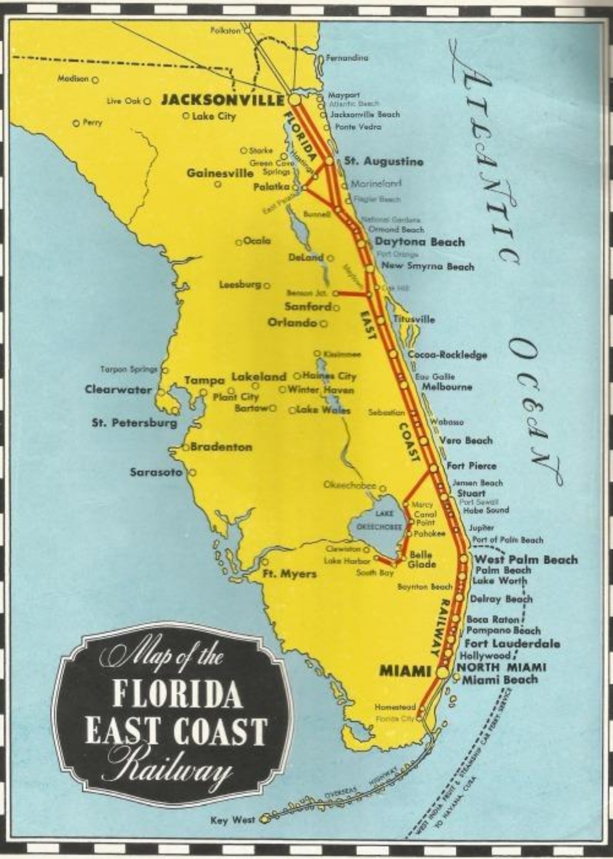 Muchos núcleos urbanos de la costa este de Florida crecieron gracias a la llegada del tren, trabajadores, suministros y visitantes impulsados por su red ferroviaria.